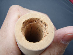 ここはコルクを入れて修正します。適当なコルクを切って間にはめ込みます。