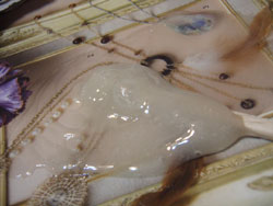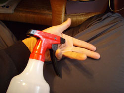 だから、アルコールで手を吹きます。この時便利なのが霧吹きで、この中にアルコール(アルコールランプの燃料)を入れておき、必要に応じてシュシュ吹いて、ティッシュで吹けばエポはキレイに取れます。