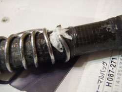 コレをやったときに、エポがパイプ内部に侵入。途中で硬化して固まった模様です。オイオイ。どうすんだ?こりゃ取れんぞ。