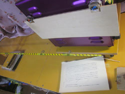 そんで、布団乾燥機につっこんだんですが、どうも、ダンボールがフニョフニョして、ダメです。うまく突っ込めません。