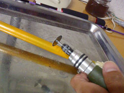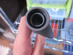 そして、パイプの穴に充填させたんですが、粘性高すぎで、なかなかうまく逝きませんでした。これをやるなら、もっと粘性が低いエポキシのほうがいいですな。