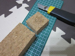 そして、今回新しいマテリアルとして導入したホムセン集積コルクとコルクを適当に切ります。集積コルクの加工については、別途、詳しく紹介します。