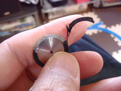 ダイヤモンドカッターの歯の部分にリールシートのナイロンがこびり付いています。マイクロサンダーのピットもそうなっていましたが、ダイヤモンドカッターもそうなるのね〜・・・・。