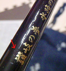 で、デカールを見てみると、やはり、気泡がかんでいます。どうにもこうにも、厚みによる「浮き」対策が出来ていません。やっぱ釣竿みたいな丸いモンに貼るならマークソフターが必要なんかのぅ。