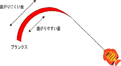 曲がりにくい面は反発力が高いので魚を引っ張る時にパワーが出ます。反対に、曲がりやすい面は魚が暴れた時に、ブランクスがきれいなベンディングカーブを描くのに役立ちます。