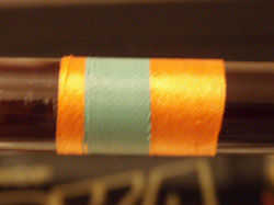 オレンジがゼニスのブライトスレッド(A)、水色もゼニスのNCPスレッド(A)。ブライトスレッドは色が透けてブランクの色がうっすらと見えます。半透明に仕上げたければ、Nスレッドです。つまり、Nスレッドは透けるけど、NCPスレッドは透けない。というわけです。