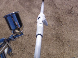 そんなわけで、ブランク塗装は、ブランクを真横に固定する方法じゃないと塗れません。先にも紹介しましたが、塩ビ配管を組み立てて、ブランクをブッ刺してクルクル回しながら塗装することです。