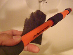 キモは、樹脂をこそぎ取るように筆先を押し付けることです。