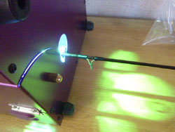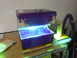 で、あとはUVハードナーの板を外して、コーティングさせたスレッドにランプの光を当てます。