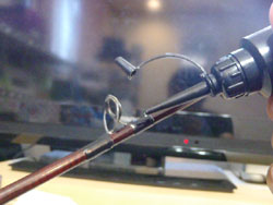 で、追加でやったんですが、ブランクのバランスがあって、とてもじゃないけど、回転台がないと、ブランクが不安定になって固定できません。トップガイドのコーティングなんかは回転台がないとまず出来ません。回転台必須です。