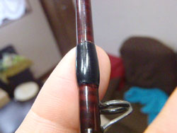 まずは適当に巻いたスレッドコーティングです。ロッドビルディングでやるのはこの2種類のみやきんね!後後ダイヤモンドラップもやってみるきんね!