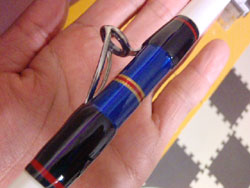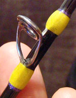 違いが分かるでしょうか?コーティングがイビツで、でこぼこしたような感じになっているコーティングは見栄えが良くありません。なるべく、ガイドの裏側をまっすぐにして、ガイドのフットの凹凸がギリギリ隠れるくらいのコーティング。それを全ガイド、同じような形状に統一すること。これが出来るかどうかがビルダーの実力だと思います。エラそうなこといってますが、私も全然ダメなほうです。