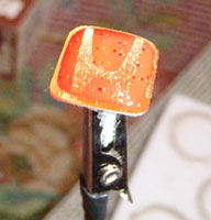 フデでナミダの先端をつかみ、両サイドに移動させます。エポキシの温度が戻ったら粘性が一気に上がりますから、水あめ状態のエポキシはフデで操られたカタチのまま、硬化します。