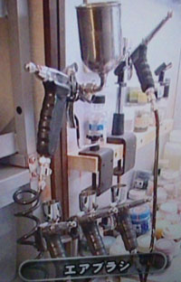 下に3台ならんでいるのが、HP83Cじゃないですか???カスタムハンドル追加して、塗料カップ80cc?のやつにしてますね。