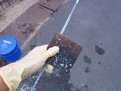 ロックリムーバーを塗りたくって、塗装を落とします。