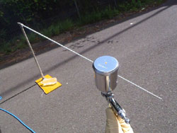 パターン幅が狭いきん、風でバタつくけど、当たった時の塗りつぶしのサクサク感が平吹きとは全然違います。ただ、平吹きの方がムラは少ないですが、ロッドビルディングだったら、丸吹きの方がいいかも?当然、ペンキの減り方も少なくて、