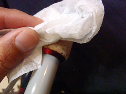 アルコールをつけたキムワイプでこそぎ取る。