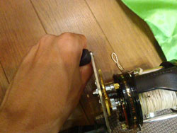 んで、ハンドル外します。ちなみに、雷電ナマヅさんからご指摘を受けたのですが、座金が逆向きです。よく気づきました(^^)