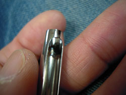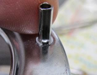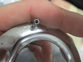 レベルワインダーが引っかかるので見てみたら、メッキのタレ跡。