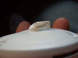 あ、あかん。剥がす時にマスキングしたい部分も剥がれとる!そもそも、これはプラモ用なんで、プラみたいに食いつきのいい材質だったらばいけるかもしれんけど、ステンやらアルミやらの難接着物質だと、剥がす時に剥がれたらいかん部分まではがれてしまう。神経質なマスキングをする素材ではないとです。