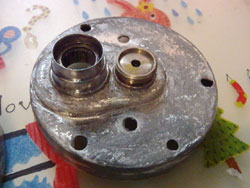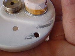 さらにシャフトの受け部では、ルーターの削りで、若干フチが削れました。やっぱし、普通の塗装と同じく、パテ埋め時でもマスキングはしてたほうがいいですね〜。
