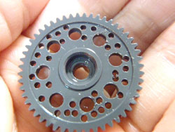 となると、選択肢を23404から5152にチェンジしてみると、アベイルで現在でも取り扱いがあるので、これを使えば、同様の効果が期待できると思います。ただし、5152ギアは19373スプールピニオンとセットで使う制約がついてきて、さらに19373ギアは現行スプールにハメた場合、スカスカになってしまうという問題が発生するのですが、19373ギアのハウジングを接着剤でかさ増ししたらしっかりと固定出来そうな気もするので、また別の機会に紹介したいと思います。