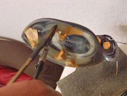 で、肝心のケレン作業なんですが、これも黒いペンキはなっかなかはがれず。クリッカーのへこんだ部分なんて、これ一生かかっても取れんのじゃね?って感じです(汗)