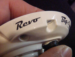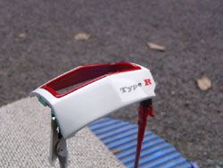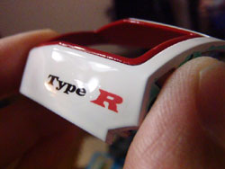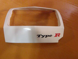 タイプRは貼る場所がないんで、レベルワインドカバーへ。勿論、Rは赤文字ですが、とりあえず大きさとフィッティングをみたいだけなので、仮です。