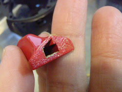 なんとかEリングが入りましたが、一歩間違えたらEリングが入らず、取り付け不可になるところでした。こんなに入り組んでいるので、ペーパーも当てられないので、対処の使用がありません。この部分は極力薄く、特にクリアなんかはマスキングして塗れないようにしたほうがいいんじゃないでしょうか。