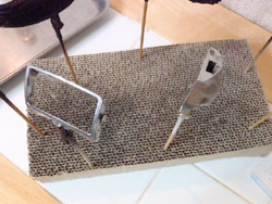 そんなわけで最終のクリア2度塗りをやります。今回、新しいアイデアで、塗装台に麺棒を一つ引っ掛けました。これで、塗装直前のゴミ取りをすればいいので便利ですw
