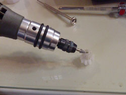 これは、既にアブの「スプールピニオンの面取り」で紹介済みなので、ルーターで両端を削るだけです。