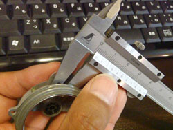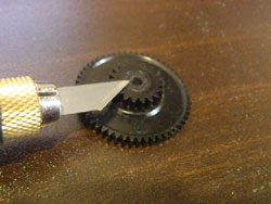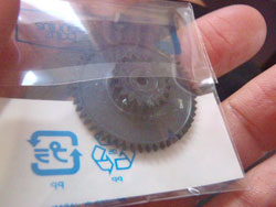 コグホイールですが、見たところ、スプールの押さえのアッセンブリにぴっちりと組み込まれているため、少々シャフト接触面を削ったところで関係ありません。