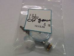 まずは、該当パーツ、ウォームシャフト、スプールピニオン、コグホイールを取り出し、ギアのサイズをノギスで測っていきます。