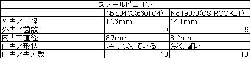 ただし、スプールピニオンは23403よりは、19373のほうが高回転型で、さらに23403→19373へのコンバートが可能なんで、19373を使ったほうがベターでしょうね。
