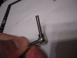 で、4mm深さノブを入れてみると、下まで行き過ぎて、ノブボディがシャフトにあたるので、シムでナンボか浮かして調整します。