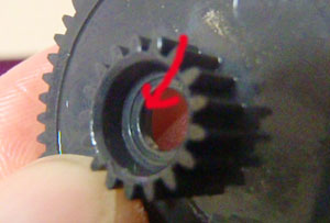 ※なお、大き目のドリルで広げようとしたらギアを支えれなかったので、ゴム砥石のほうが良いと思います。