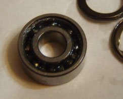 ただ、気をつけておきたいのは、シールドの内側には粘性の高いグリスが含まれており、これを完全に脱脂しないと、回転性能はボロボロというわけです。SARB参照。パーツクリーナーで徹底的に洗っても、シールドがついている関係で、完全に脱脂出来ているかどうか目視確認が出来ません。