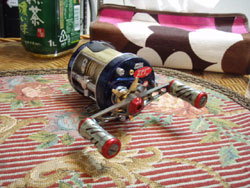 最悪の原因は精度の甘さにあると思います。微妙にセンターがズレているの、分かりますか?右のベアリングが右上にセンターがズレています。おそらく、これがブレを誘発して、回転が急激に落ちているものと思われます。