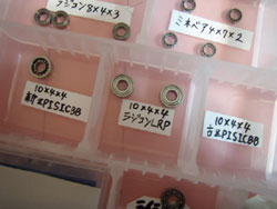 新品のべアリングを何種類か持ってきて、リールにセット。
