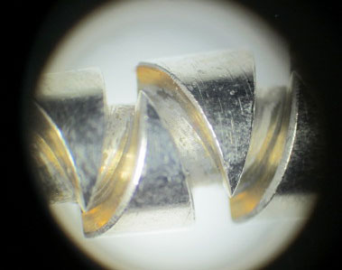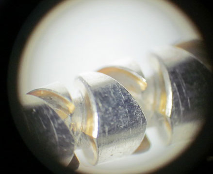 ただ、よーーーく見てみると、ウォームシャフトの鋭角ツノの先端部両サイドがスレて、メッキの剥がれた跡がありました。鈍角ツノにはみられないのですが、鋭角ツノすべてにこのスレハガレが見られました。