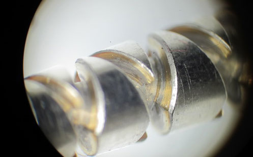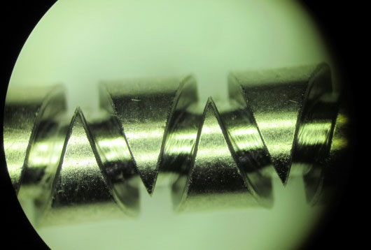 通常だと、ウォームギアとパイロットガイドでいうと、消耗品はパイロットガイド側で、パイロットガイドのVの字の根元が磨耗して細くなっていくのですが、この場合、パイロットガイドがウォームシャフトを磨耗させているという感じです。