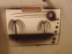 ミクシィのエアブラシコミュで、墨汁で練習している人をみつけました。で、よくよく、プロホンポのHPをみまわしてみると、ここでも墨汁でレッスンをしており、厚手の画用紙を使った模様。