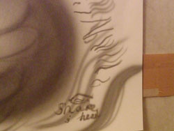 見よう見まねでやってみたものの、やはり、難しい・・・特に、ちょっとでもガンを近づけたりトリガーを引きすぎたりすると、一気に修正が効かない線が出来上がってしまって、しかも、光と影を意識しながら書くっつっても、今まで実線でしか絵を書いたことがないもんやけに、全部影になってしまうのよね。