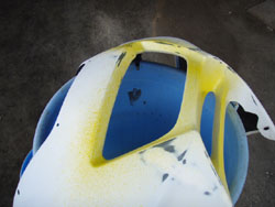 かなり横道にそれましたが、もともとがTRXのカウルを取り付けているため、アッパーカウルだけ、色が違うんですよね。黄色にしようしようと思いつつ、気づけば6年の月日が流れています。ちょうどロッドビルディングで塗装を勉強して楽しくなってきたところだから、この際なので、塗ってしまおうというわけです。