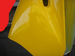 サイドの面。タレまくってそれが完全に修正できなかったため、ウネウネの塗膜。フニャフニャ動くのでコンパウンドもかなーーりかけにくかったっけ。