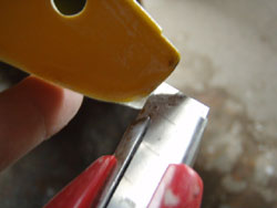 コンパウンドがあっという間に、ワタの中に入ってしまい、表面には研磨剤がナッシング状態に・・・。こりゃ使えません。それと、やっぱりカウルがぶれるので、やりにくいです。特に、バックミラーをつけるところなんて、フニャフニャしているんで、グラングラン、曲がりまくりで、全然研磨できません。