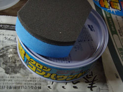 白・黄色用のミクロコンパウンド。これならコンパウンドスポンジも付いています!このスポンジですが、洗車コーナーのワックスについているやつと同じですね。値段はセットで700円でしたw