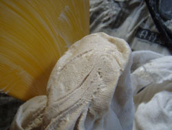 カピカピになったコンパウンドで磨くとこんな感じです。ママコがウネウネと伸びるような感触でしごく感じです。ツヤの出るのが早いです。