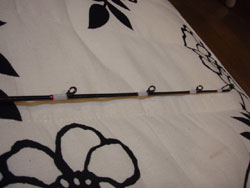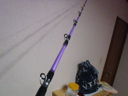 ところが、このセッティングがダメダメでした。セッティング的には、ショアジギングロッドと同レベルのガイドセッティングです。しかし、雷魚ロッドにしてはリングがでかすぎ。ショアジギングはスピニングリールが前提で、スピニングではこれでいけるかもしれませんが、ベイトで使うにはリング径が大きすぎ。バタつきが大きくなりすぎて、キャスト精度がさっぱり出ません。ベイトを使うなら大口径のガイドは厳禁です。