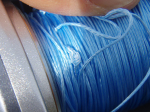 で、触った瞬間、ン!?と思ったのが、硬さ。無茶苦茶硬くて、まがんねーっつのこの!ヨツアミのウルトラダイニーマもたいがい硬かったけど、こいつはそれ以上!しなやかだと飛距離が出る分、カバーに引っかかりやすくて、反面、硬いとカバーに引っかかりにくいが飛距離が出なくて、メンディングがしにくいという感じだと思っていたんですが、こいつはどんな感じなんでしょうね?コーティングが厚いのかな!?触った感じ、ツルツルです。